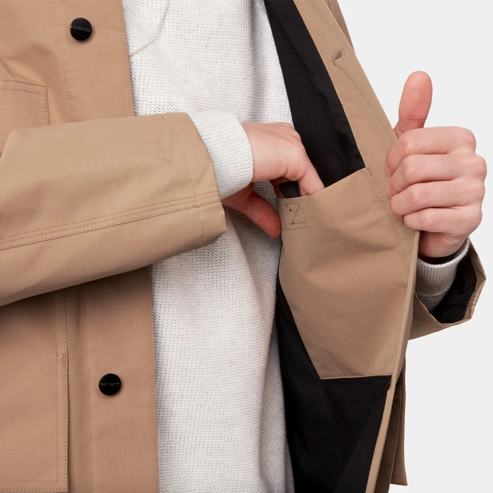 Το μπουφάν Montana είναι κατασκευασμένο από ανθεκτικό Διαθλετει πολλαπλές τσέπες που αντλούν έμπνευση από το κλασικό κυνηγετικό μπουφάν. Το μπουφάν εχει επίσης μια εσωτερική τσέπη και την κλασσική με υφαντή τετράγωνη ετικέτα της Carhartt στο αριστερό στήθος.
